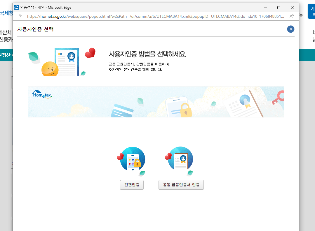 위에 안내드린 바로가기 링크로 바로 국세청 홈택스로 이동해주세요