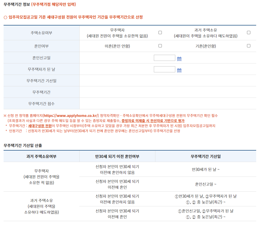 무주택가점 해당자이시면 무주택기간정보 입력해 주세요