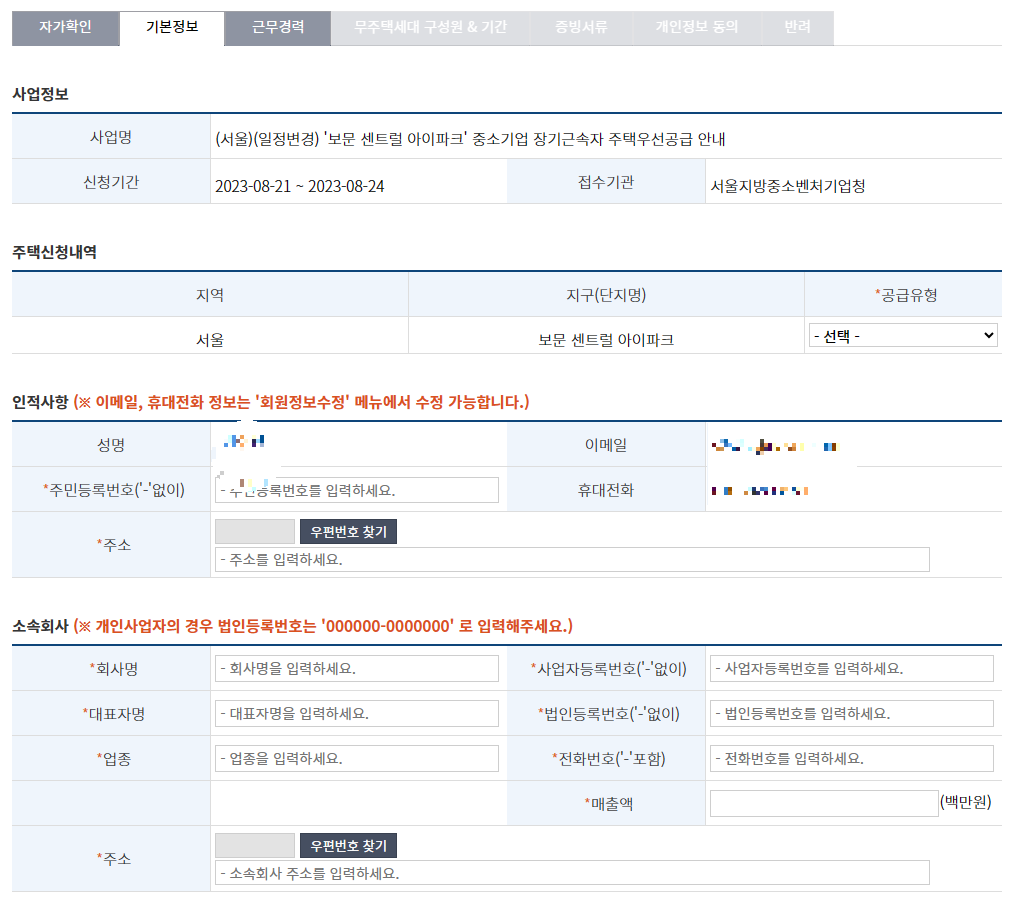 나의 인적사항과 소속회사의 정보 입력해 주세요