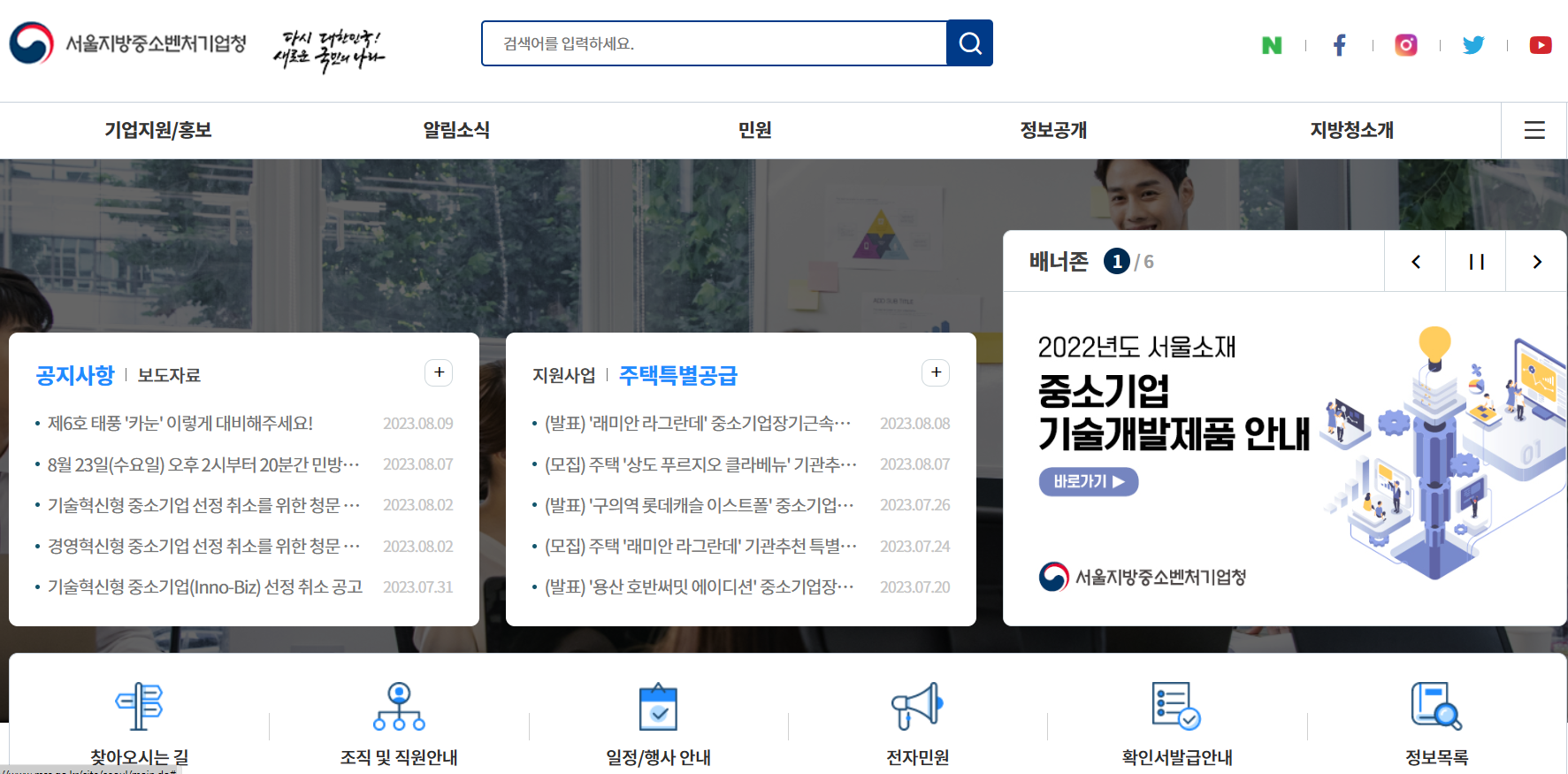 서울지방중소벤처기업청 사이트
