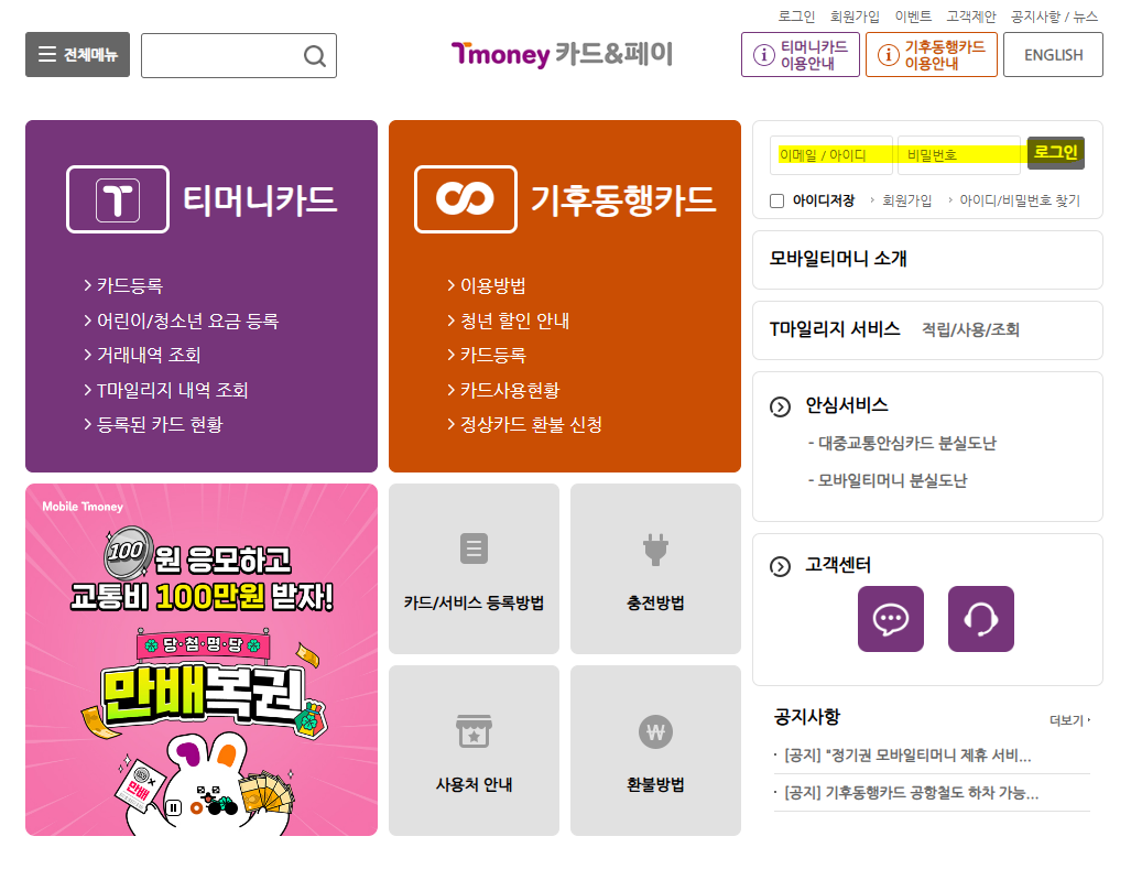 아래 버튼 누르시면 바로 티머니 홈페이지로 이동 가능합니다