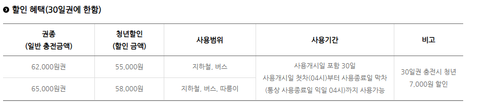추후에는 충전시에 '청년할인'버튼 눌러서 55,000원 (따릉이 포함 58,000원) 으로 충전하시면 됩니다