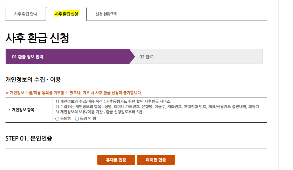 신청방법 : 티머니 카드&페이 홈페이지 내 청년 소급혜택 메뉴에서 신청(로그인 필수)