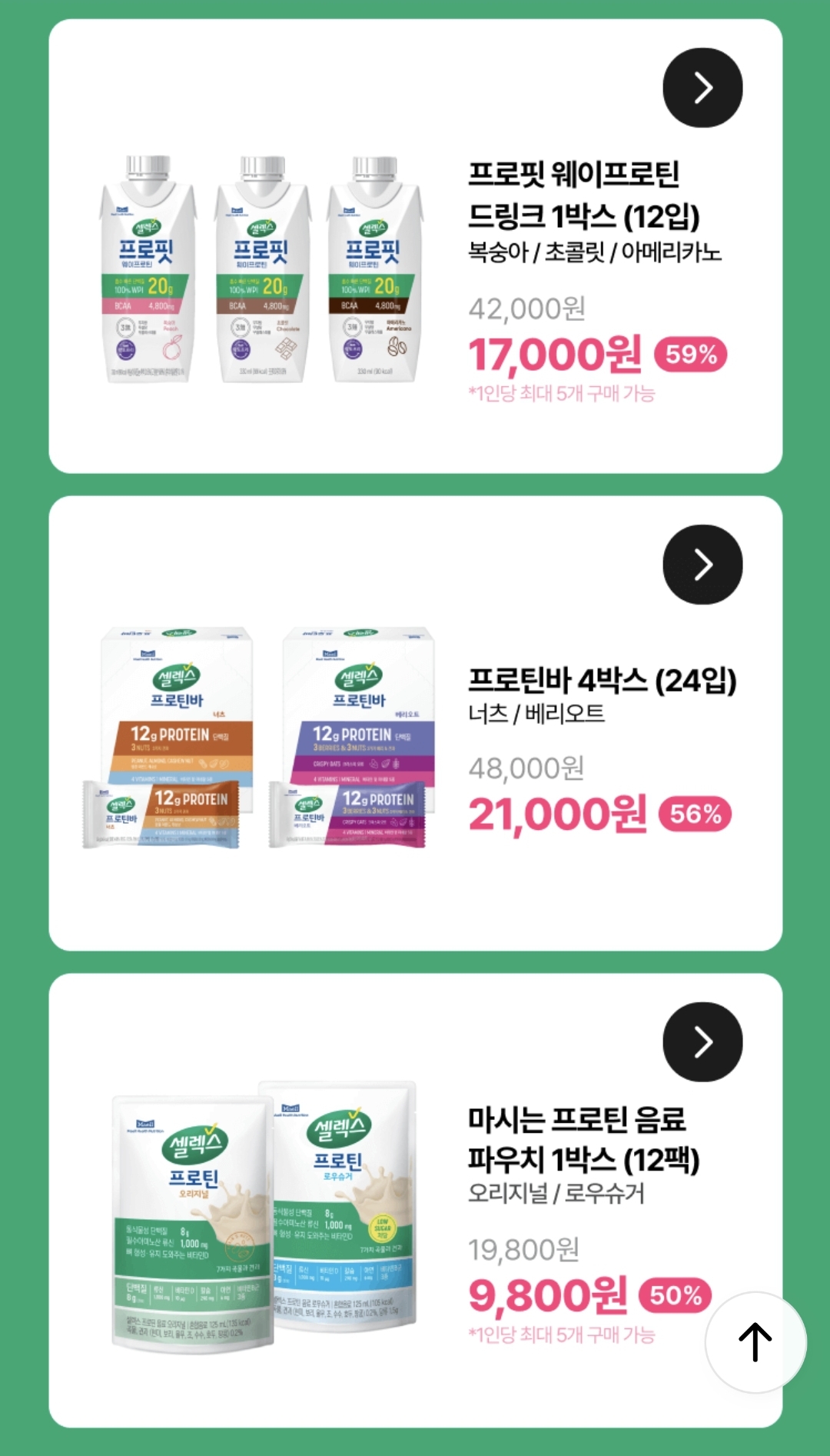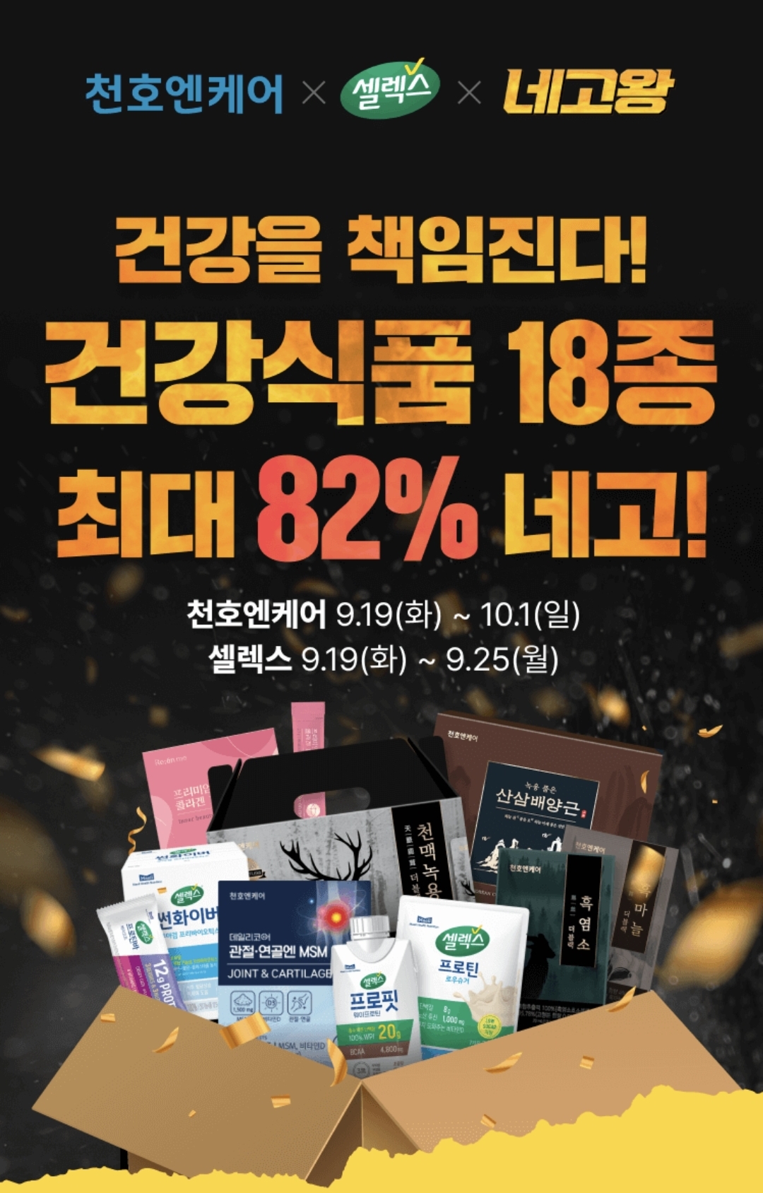 천호엔케어와 셀렉스 두 업체의 건강식품 18종 제품들이 최대 82%까지 네고되어 선택의 폭이 더 넓으니 원하시는 상품 있으시면 바로 구매하세요