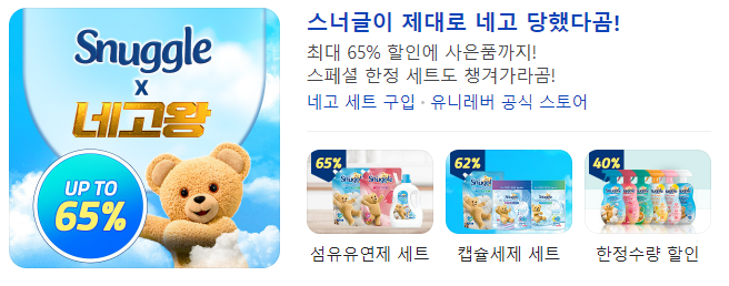 스너글(Snuggle) 에서 세탁세제와 섬유유연제를 최대 65%까지 네고했다고 합니다