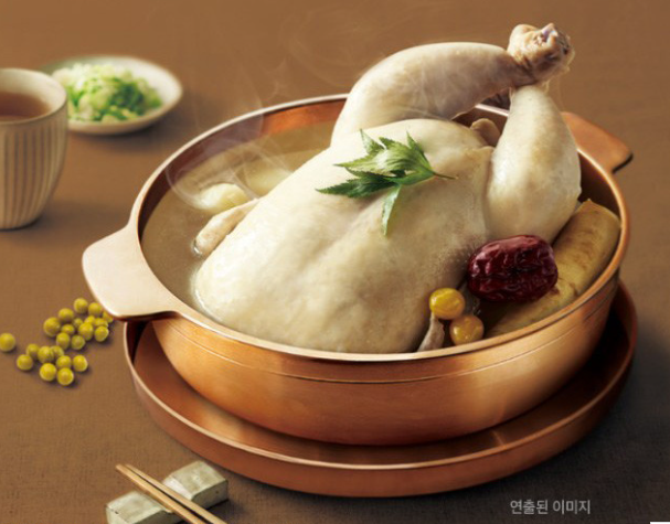 속재료는 수삼, 통마늘, 대추, 찹쌀, 멥쌀, 녹두이며 흑미, 차조, 쌀가루, 당귀, 엄나무, 황기, 천궁, 상황버섯분말, 영지버섯분말,오곡분말, 뽕잎가루, 연잎가루로 우려낸 육수입니다.