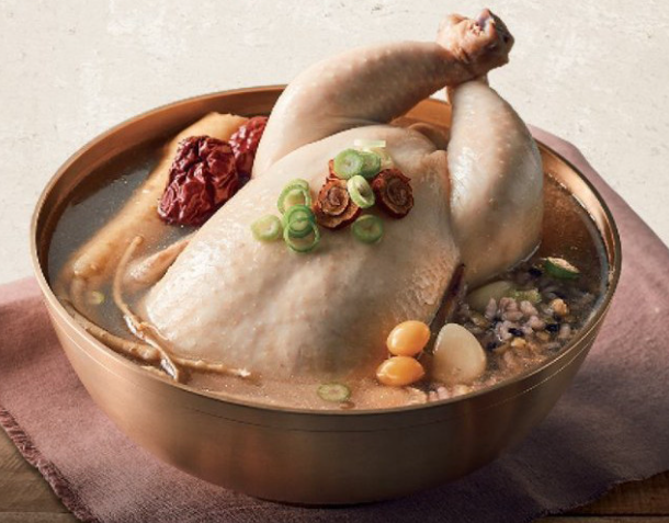 속재료는 수삼, 통마늘, 대추, 찹쌀, 멥쌀, 녹두이며 흑미, 차조, 쌀가루, 당귀, 엄나무, 황기, 천궁, 상황버섯분말, 영지버섯분말,오곡분말, 뽕잎가루, 연잎가루로 우려낸 육수입니다.