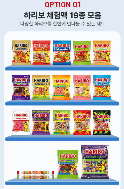 다양한 하리보를 한번에 만나 볼 수 있는 19종 모음 세트 구성입니다