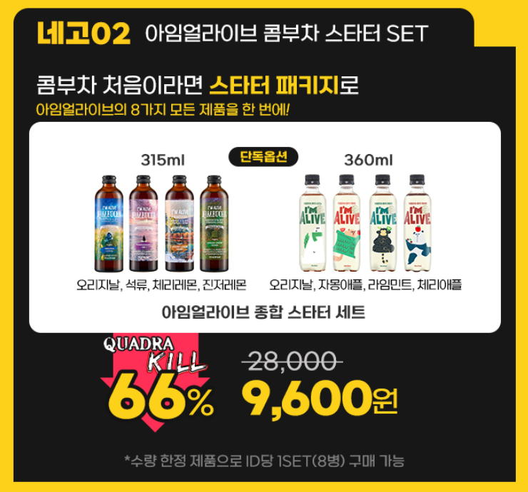 네고2) 아임얼라이브 콤부차 스타터 SET 66%할인 9,600원