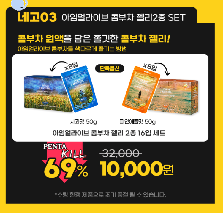 네고3) 아임얼라이브 콤부차 젤리2종 SET 69% 할인 10,000원