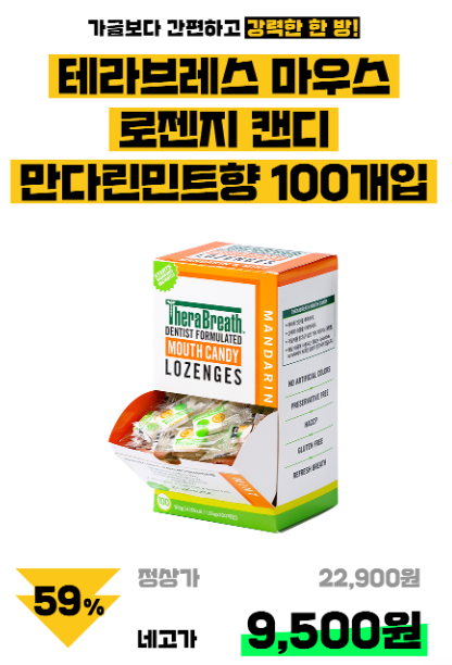 네고4 테라브레스 마우스 로젠지 캔디 만다린민트향 100개입 59% 9,500원