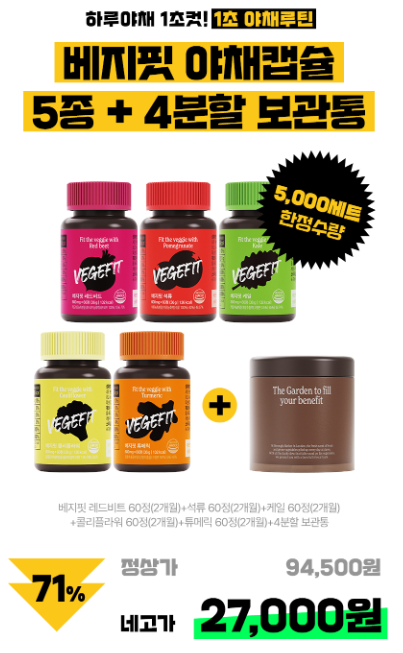 네고7 베지핏 야채캡슐 5종 + 4분할 보관약통 1개 71% 27,000원