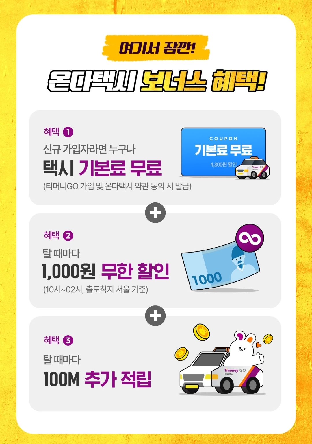 티머니고 신규 가입자라면 온다택시 보너스 혜택도 있어요