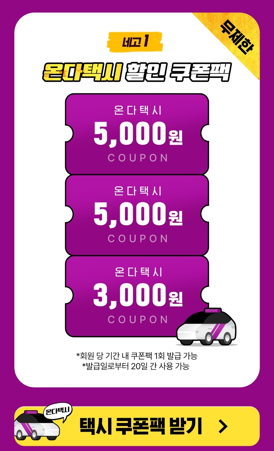 네고1 ) 온다택시 할인쿠폰 3장 총 13,000원