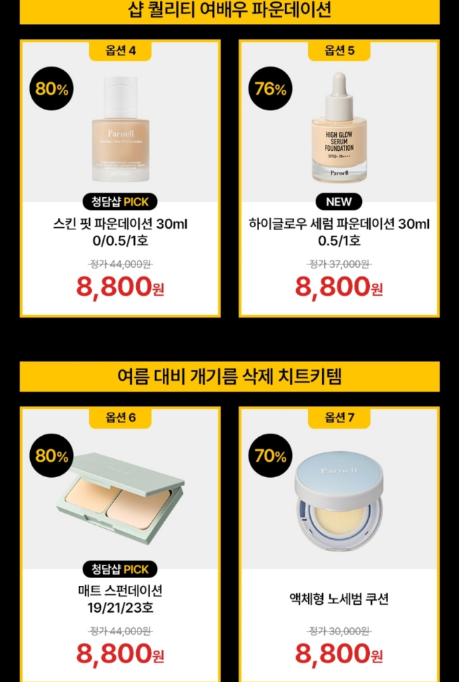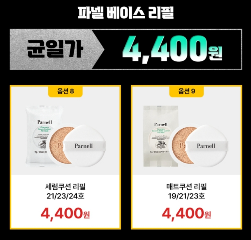 '파넬 parnel '이라는 브랜드이고 기초 제품은 5800원, 베이스 제품은 8800원, 베이스 리필제품은 4400원으로 완전 저렴하게 네고 되었어요