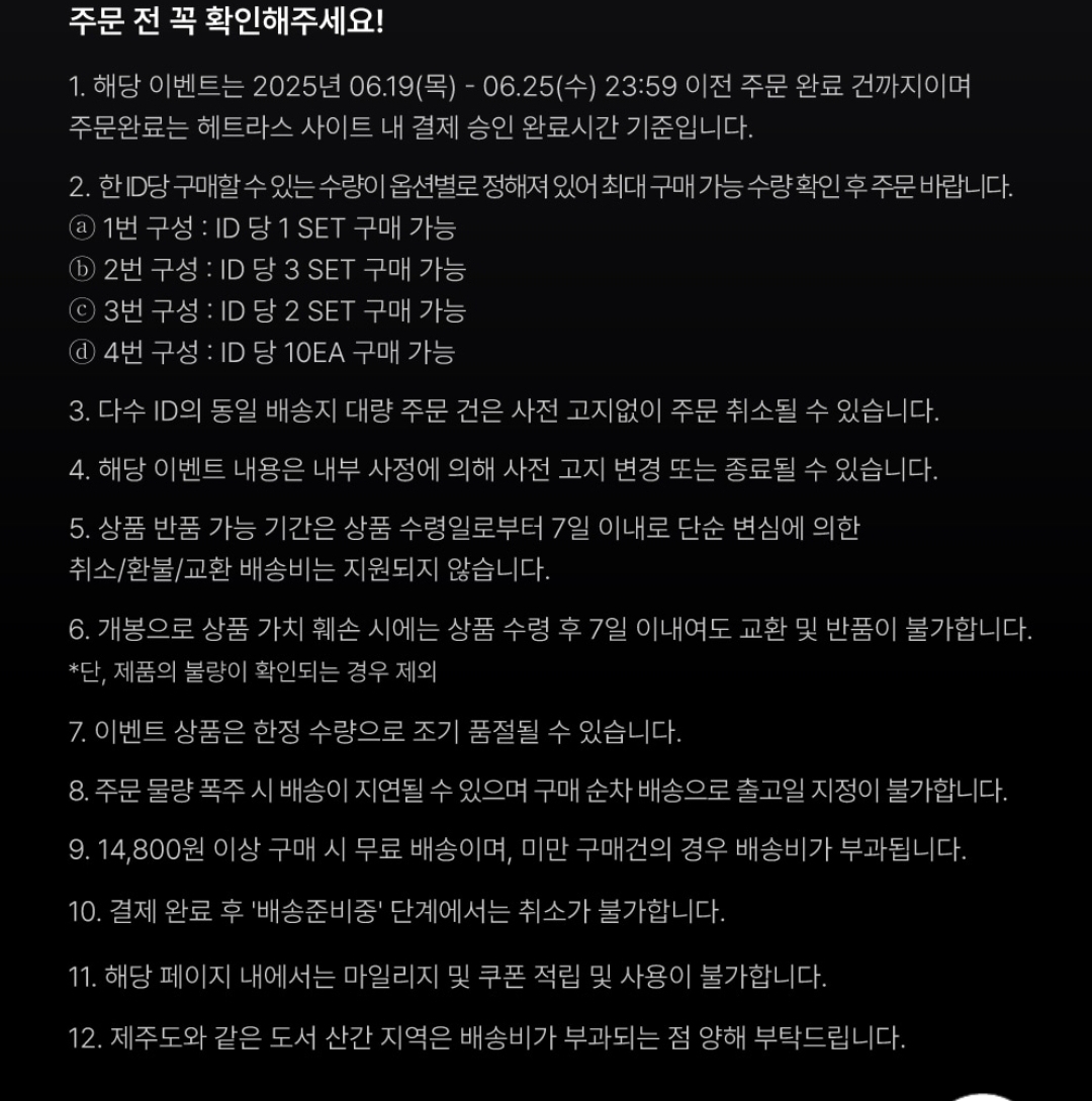 주문 전 주의할 사항 적혀있으니 확인해주세요