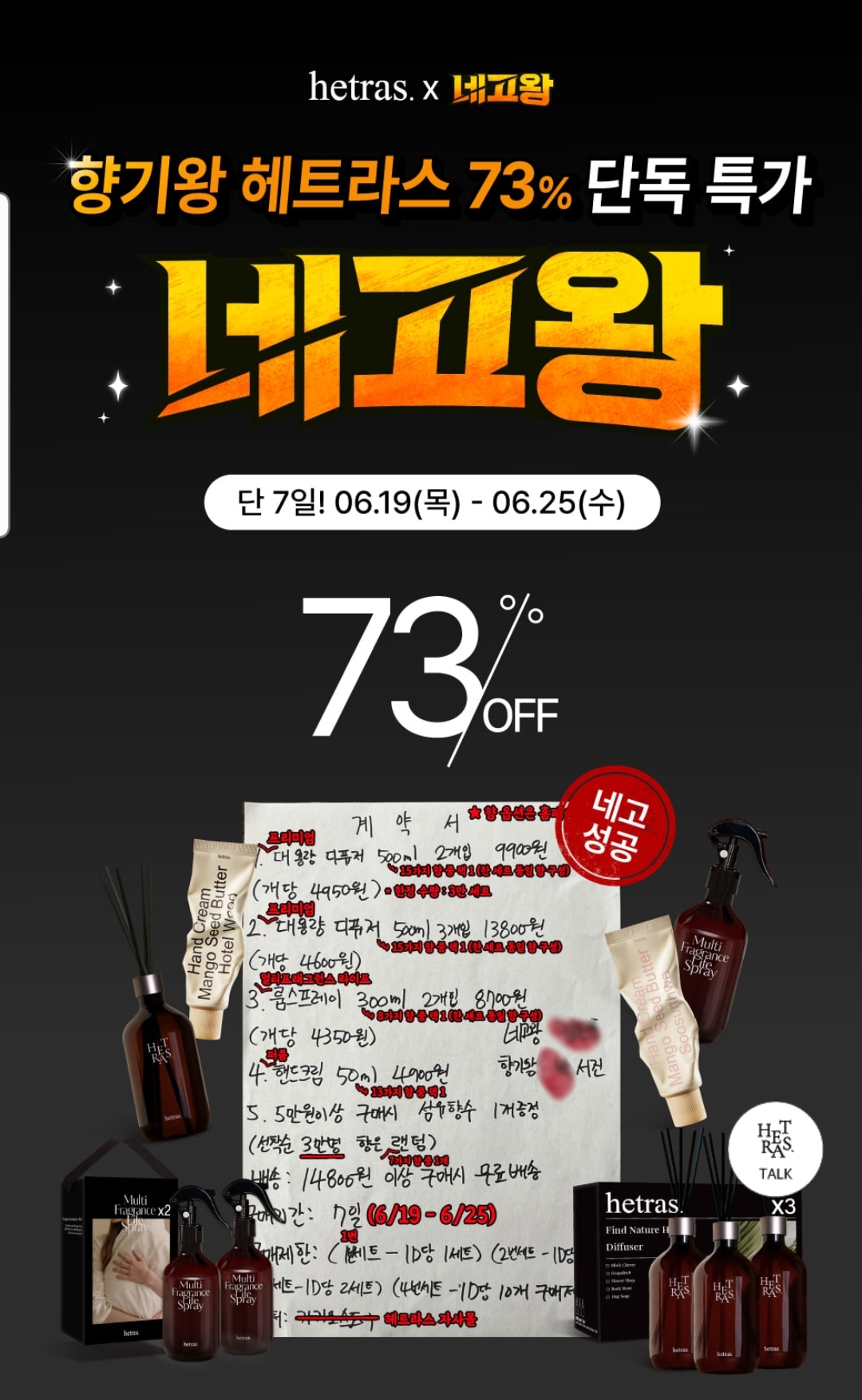 네고왕 기간은 6월 19일부터 6월 25일까지 7일간이며 구매는 헤트라스 자사몰에서 가능합니다