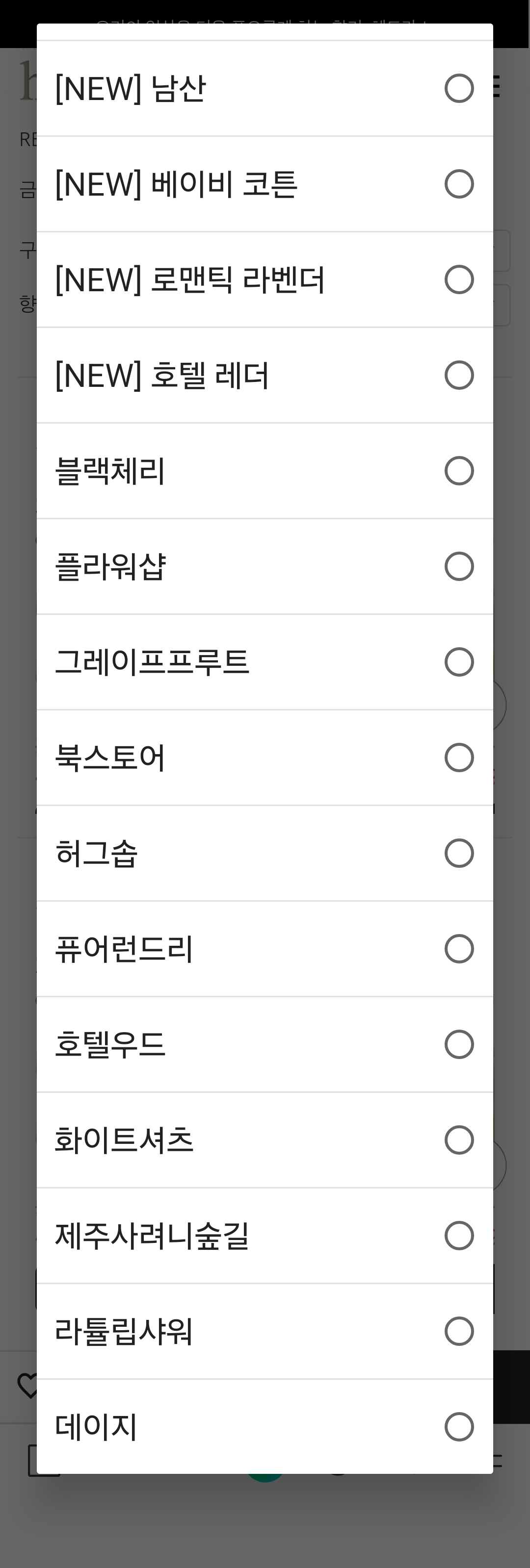 향 13가지 중 1가지 선택이에요