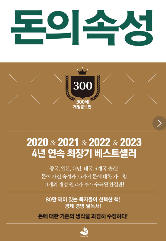 돈의 속성 김승호 작가는 한인 기업 최초 글로벌 외식 그룹은 스노폭스 그룹의 회장이며 전 세계의 각종 강연과 수업을 통해 '사장을 가르치는 사장'이다. 전 세계 11개국 3,878개의 매장과 만여 명의 직원을 지닌 글로벌 기업으로 자리매김했다. 연매출 1조를 이루고 미국 나스닥 사장을 앞두고 있다.