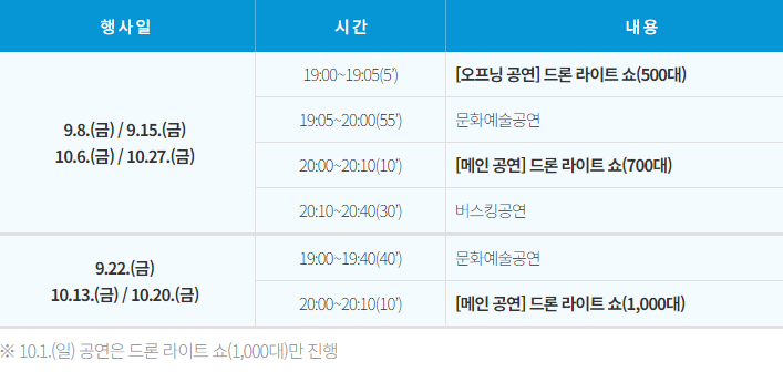 2023 한강불빛공연 (드론 라이트 쇼) 일정