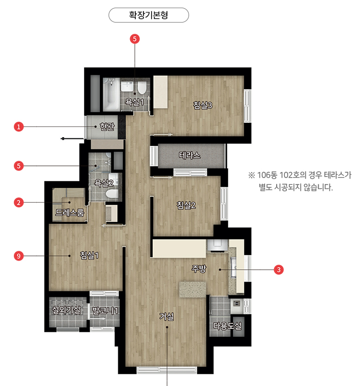 ● 72TE(판상형 / 방3, 화2, 드레스룸,테라스)