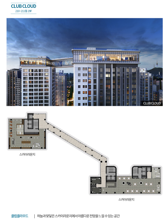 메이플자이 210~211동 꼭대기 29층에는 스카이 라운지도 생길 예정입니다