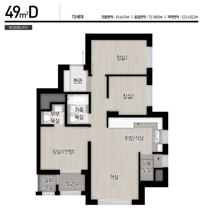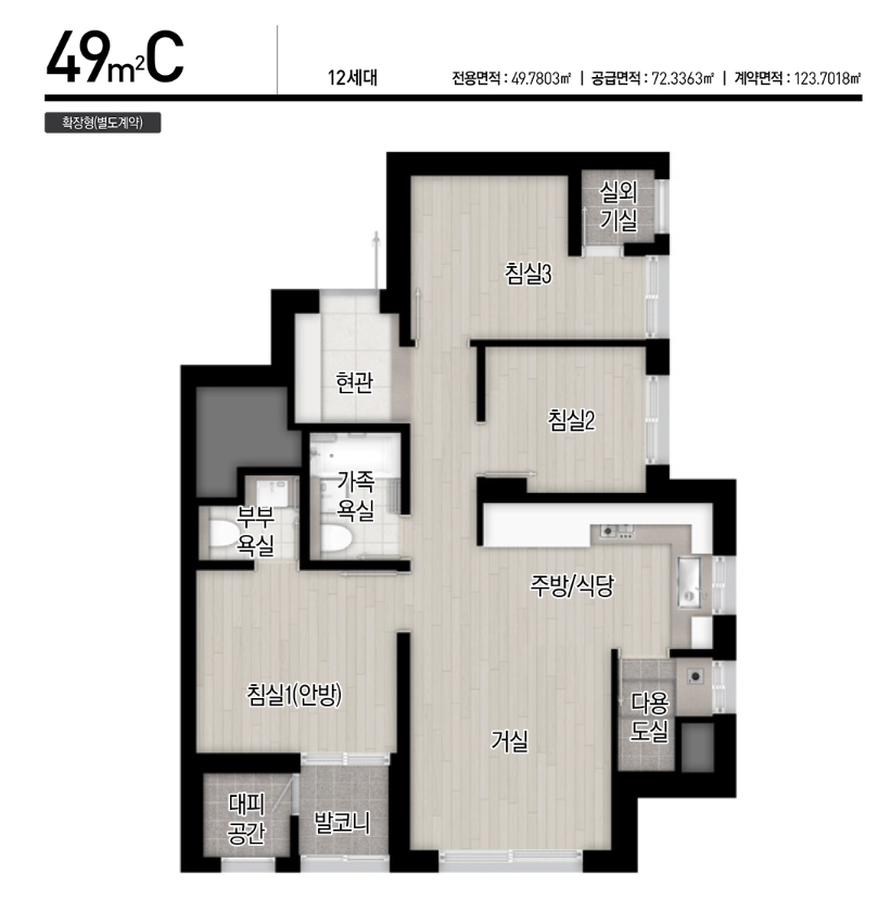 큰 타입은 조합원분들이 모두 선택하셔서 49~59 타입만 일반분양 청약 가능합니다