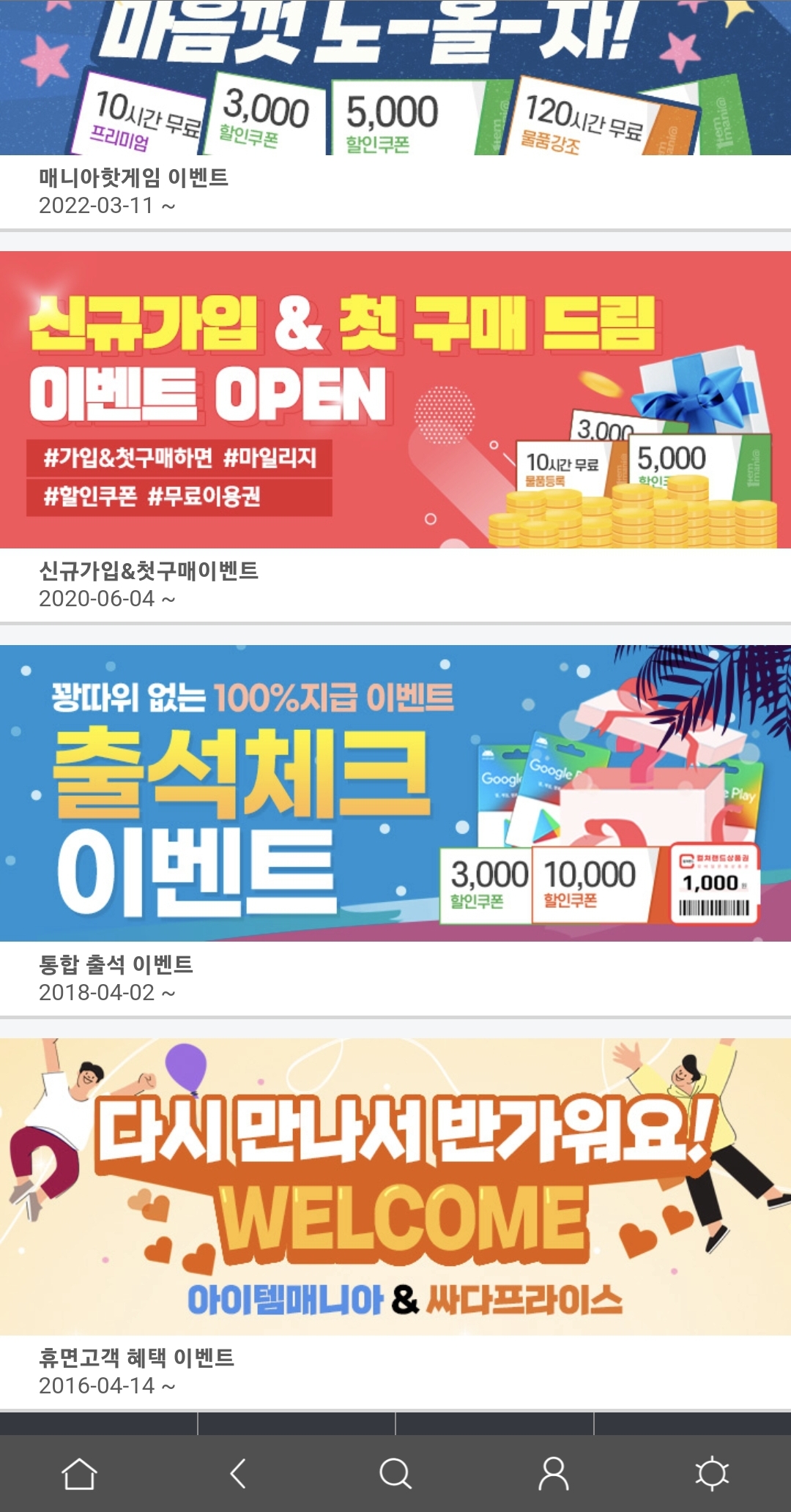 아이템매니아 맨 처음 화면 중간 부분에 이벤트 눌러주세요