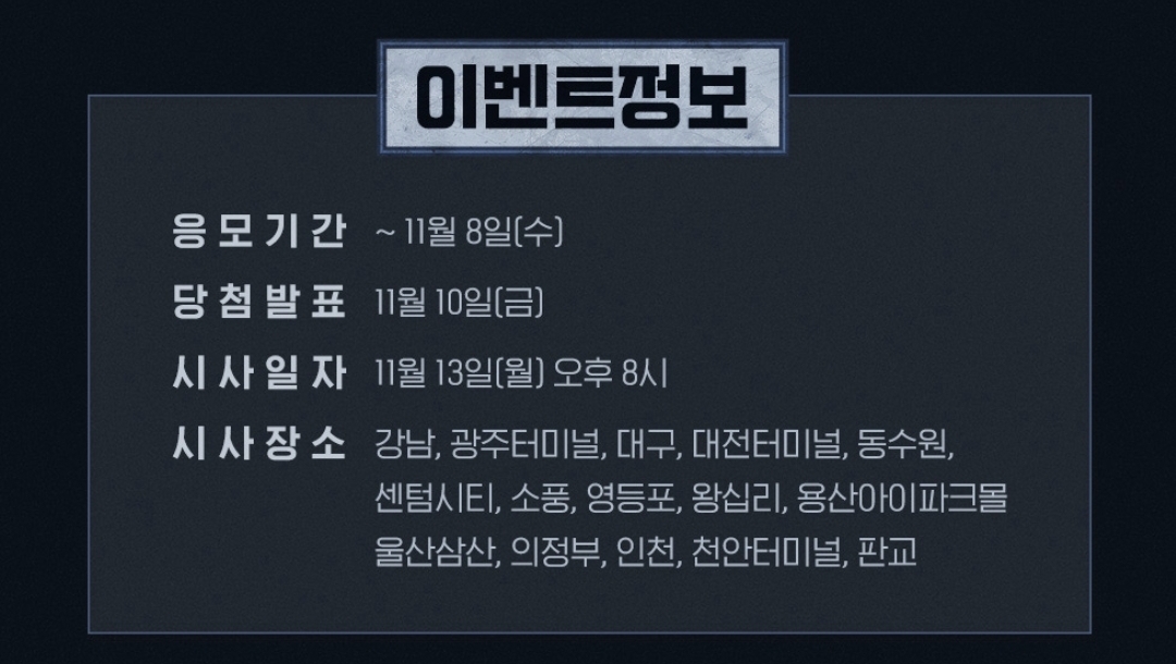 두곳 모두 시사회 당첨자 발표는 11월 10일 금요일입니다