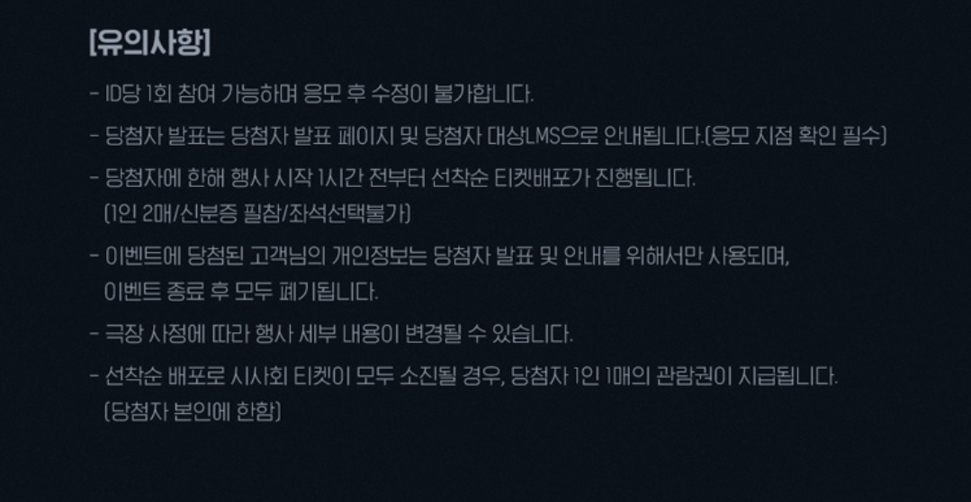 시사회 이벤트 응모는 아이디 1개당 1회 참여 가능하며 응모 후 시사 영화관 수정이 불가합니다
