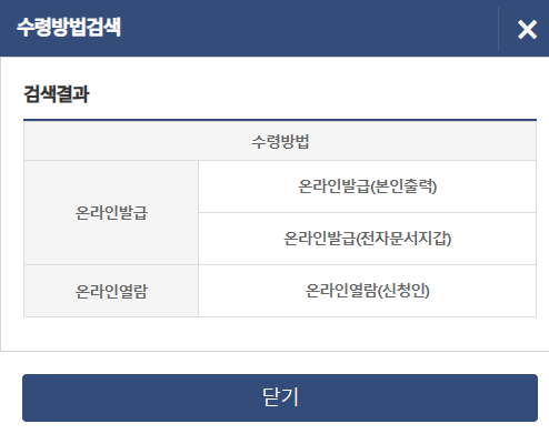검색버튼 눌러서 온라인발급(본인출력) 선택해주세요
