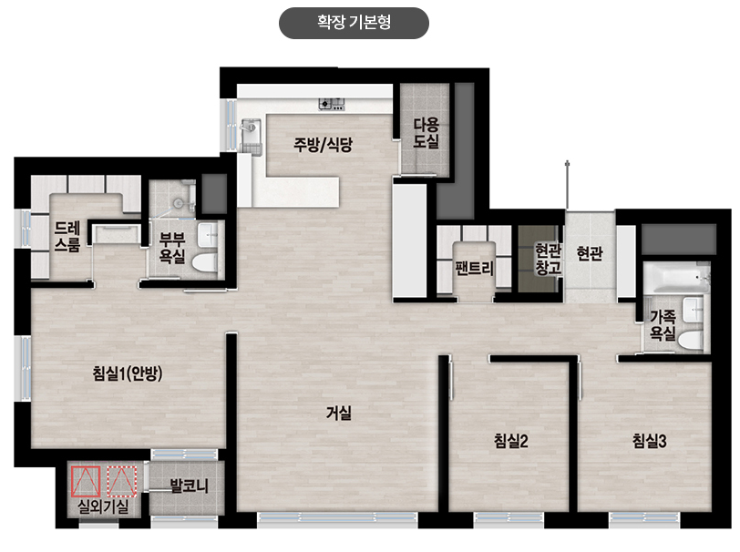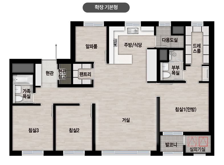 A타입보다 드레스룸이 작은 대신 베타룸이 있습니다.