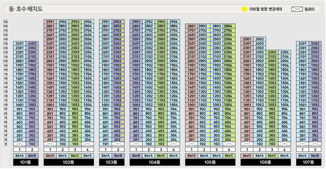 동마다 일부 호수는 1층 필로티 구조로 되어 있습니다.