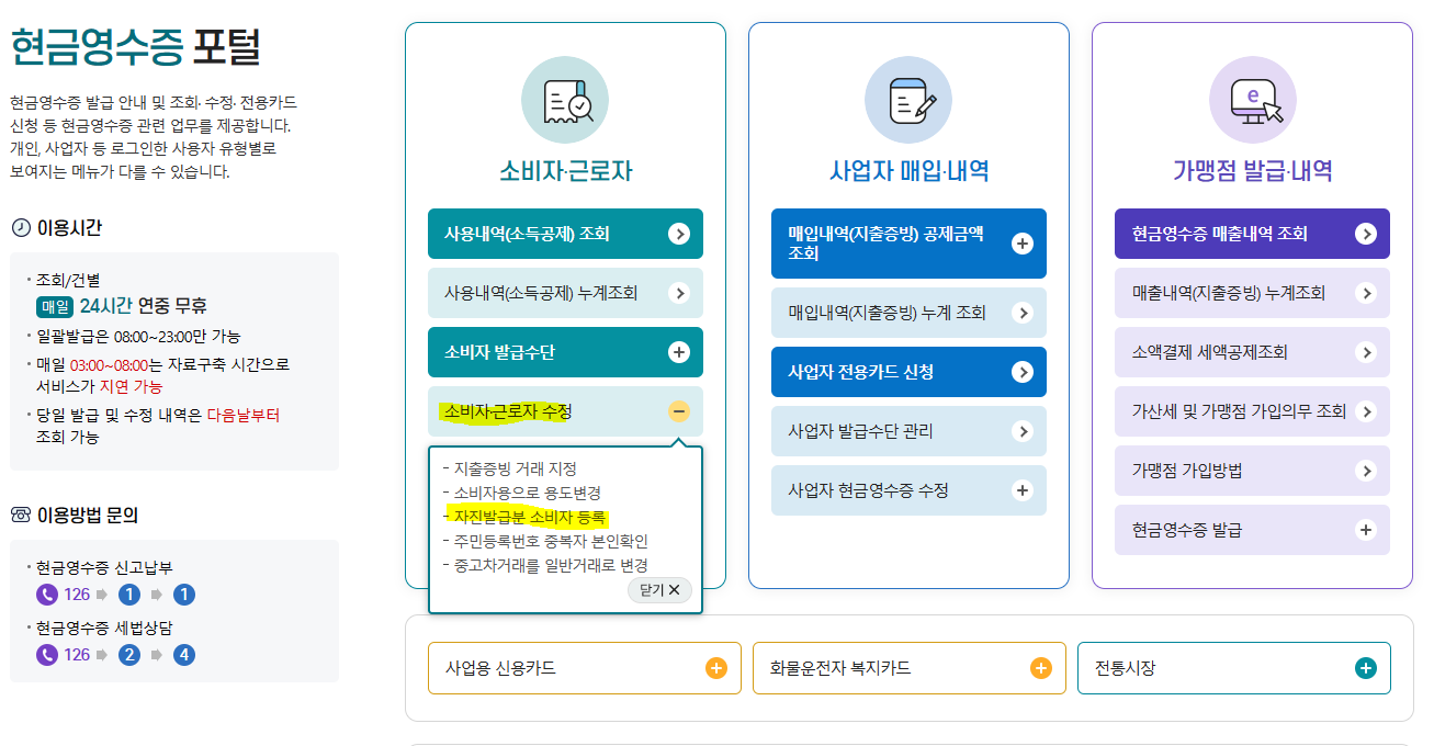 그럴 경우 영수증을 받아 오셨다면 국세청 홈페이지에서 현금영수증 자진발급이 가능합니다