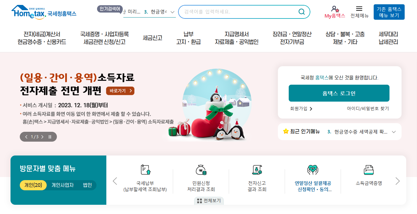 1. 아래 바로가기 링크를 통해 국세청 홈택스로 이동해 주세요