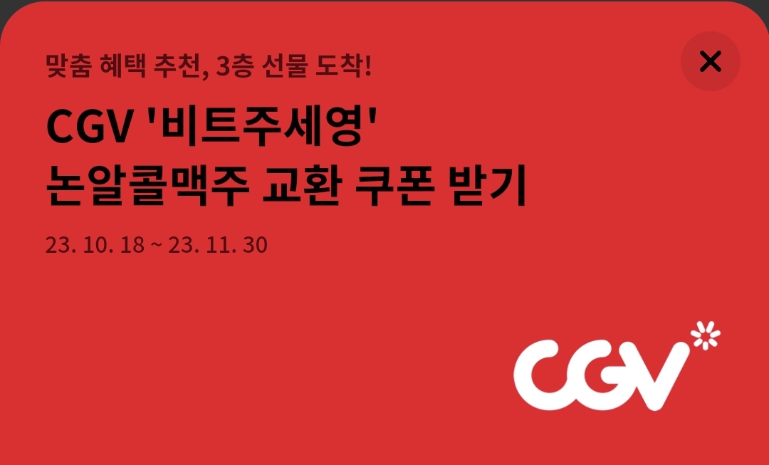 현대카드 앱에 들어가시면 3층 선물에 CGV 논알콜 맥주 교환쿠폰 이벤트 확인하실 수 있습니다