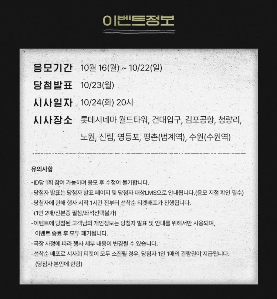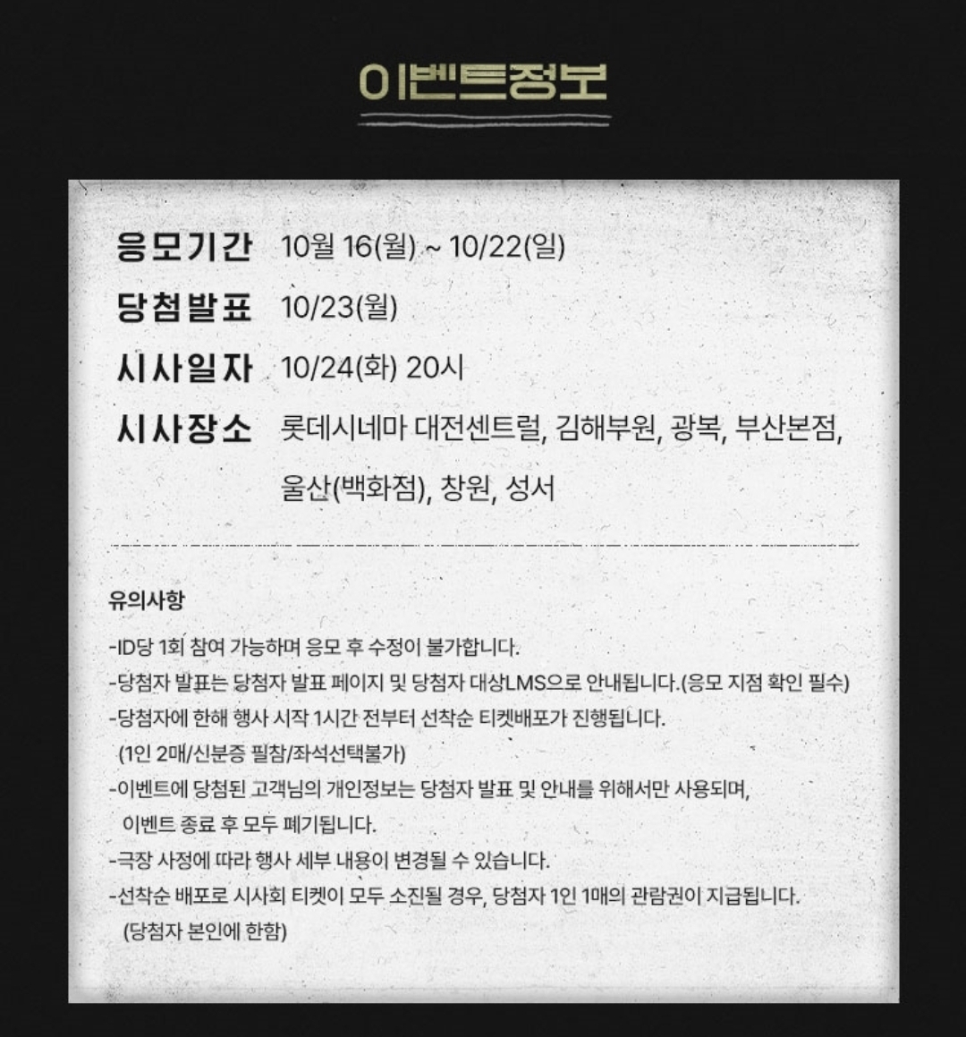 당첨자는 시사회 당일 신분증 지참하여 방문해 주세요 양도 불가합니다