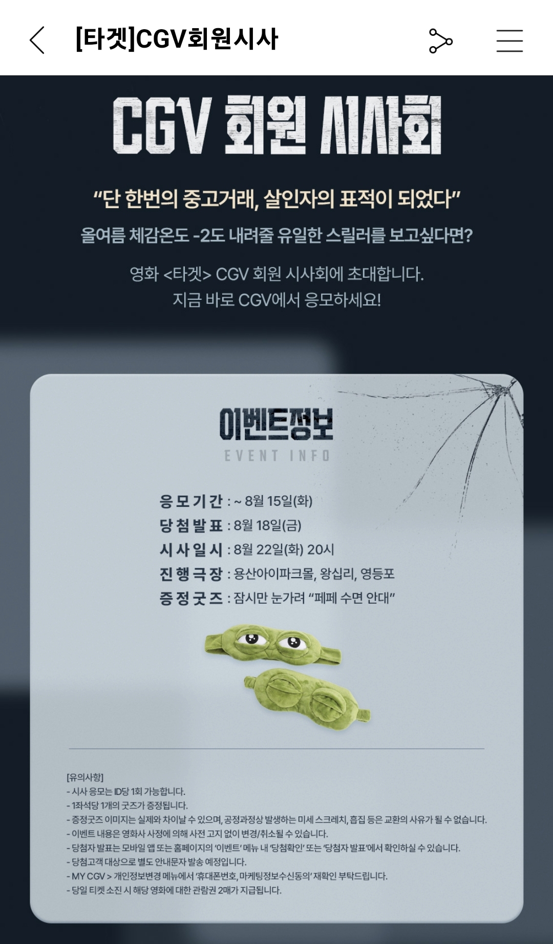 보통 시사회에선 선물 없는데 이번엔 페페 수면안대도 증정한다고 하네요
