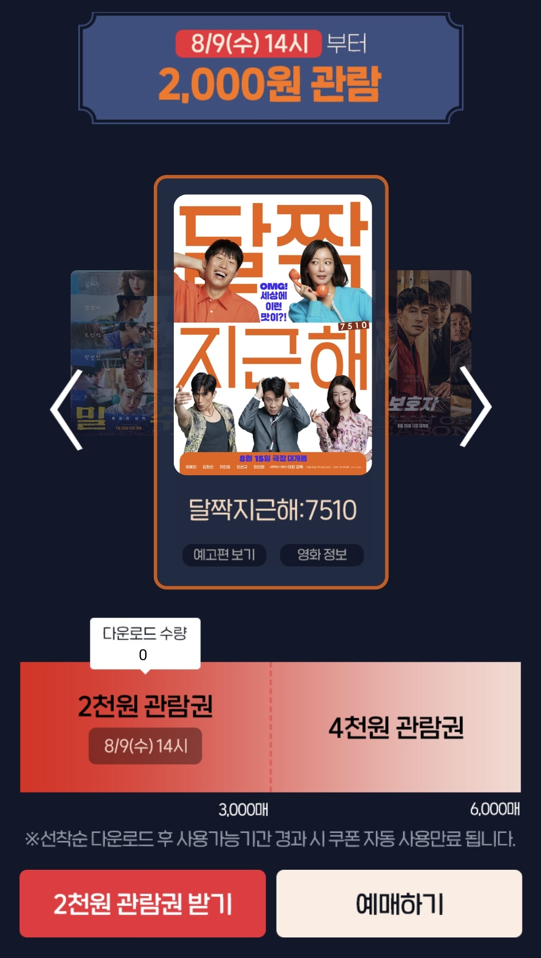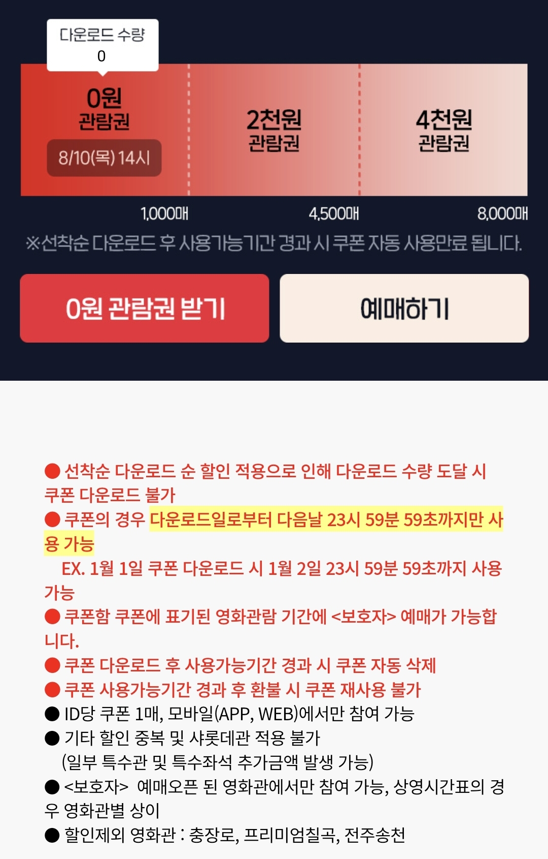 선착순 1,000명에 못들더라도 2천원, 4천원 관람권 받을 수 있으니 참여해보세요