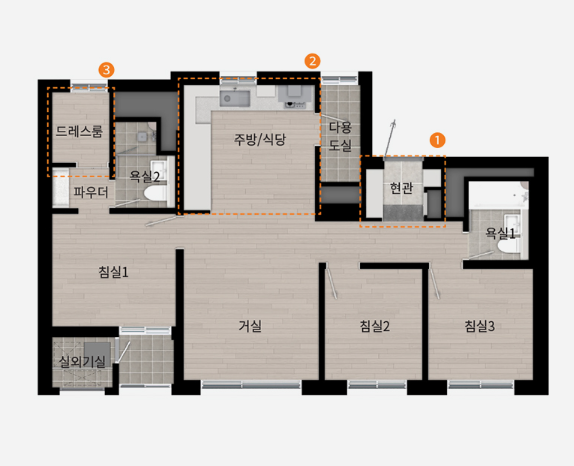 ◐ 104C(방4/화2/드레스룸/파우더룸)