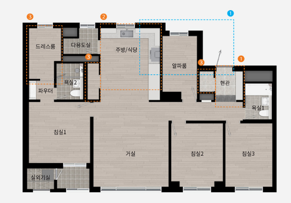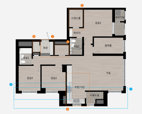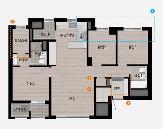 ◐ 104A(방4/화2/드레스룸/파우더룸)