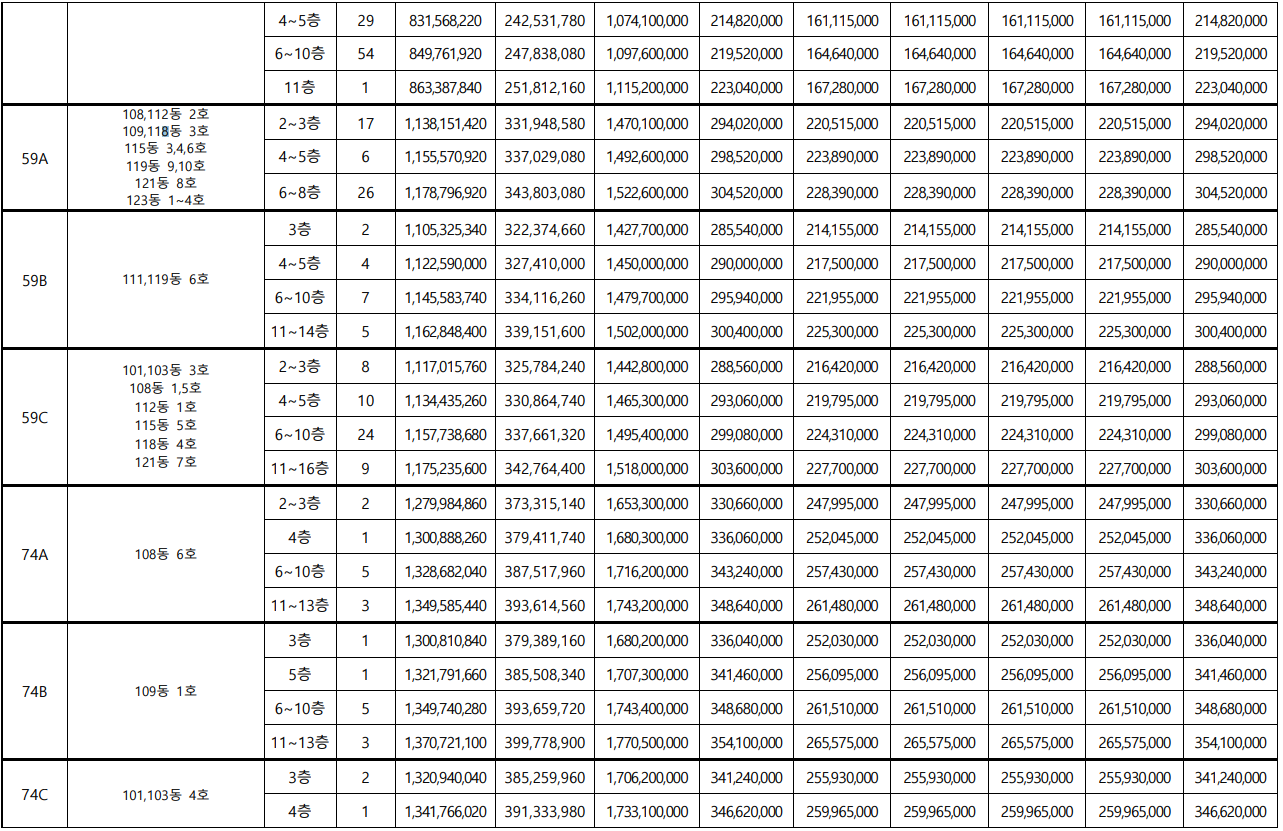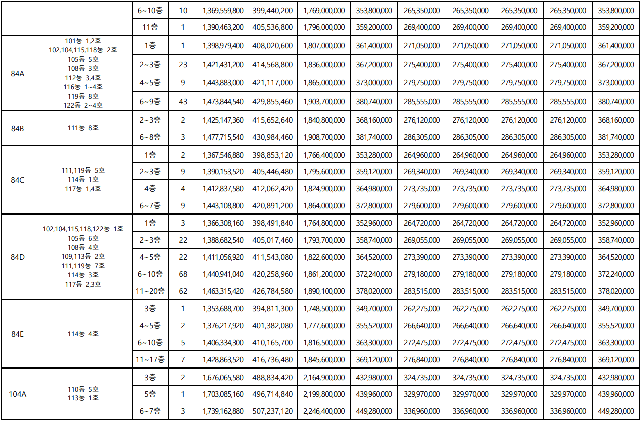 동호수 배치도입니다