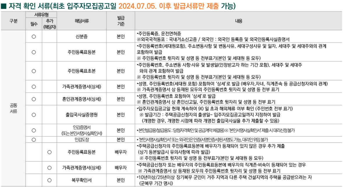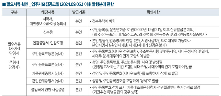 입주자모집공고일 이후에 발급한 서류만 제출 가능하니 주의해주세요