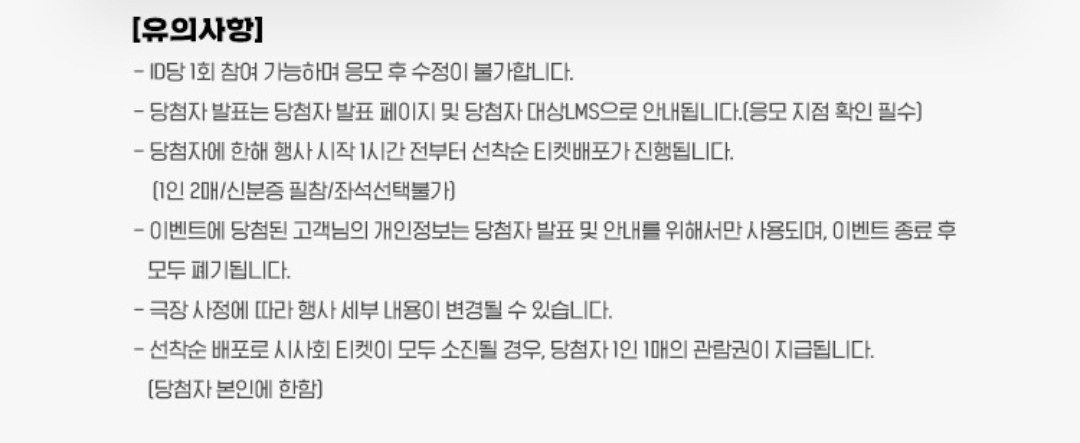 이벤트 기간 내에 응모하셔서 관람해 보세요