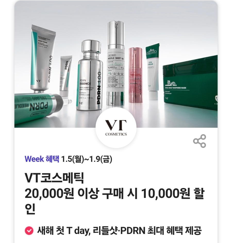 VT코스메틱 20,000원 이상 구매 시 10,000원 할인