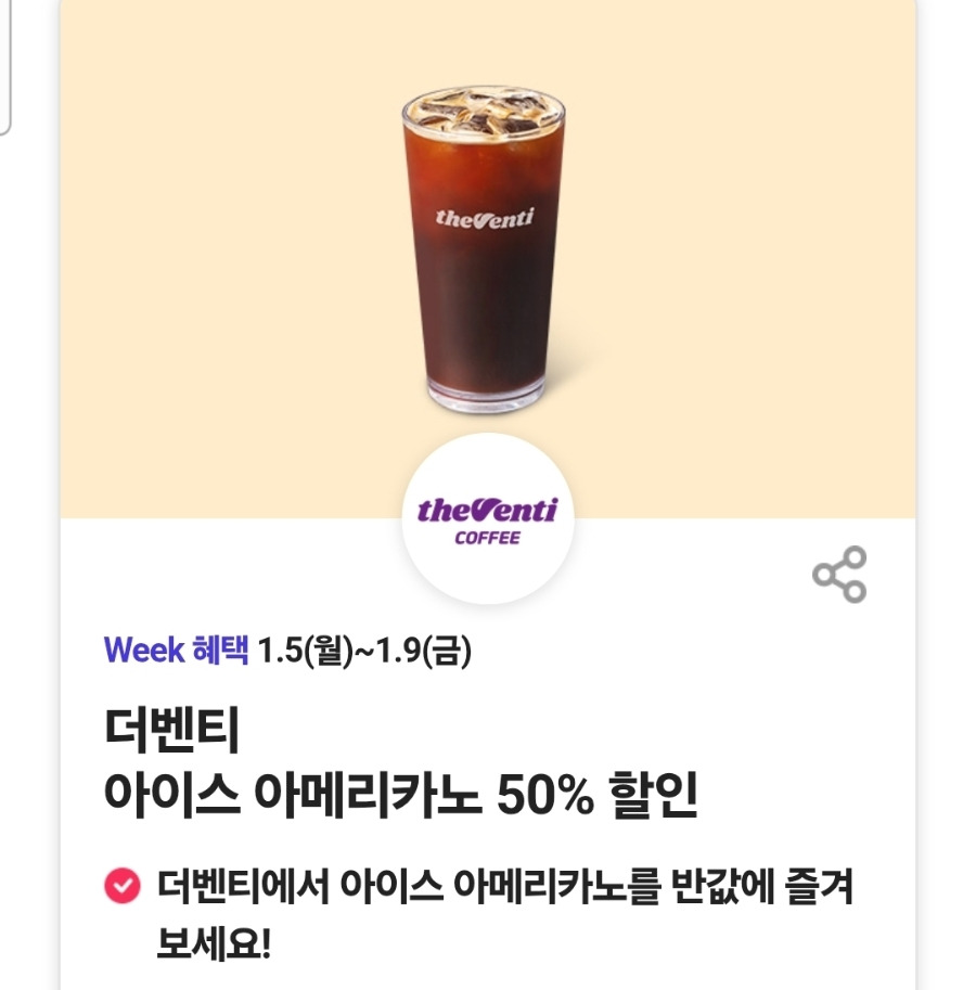 더벤티 아이스 아메리카노 50% 할인