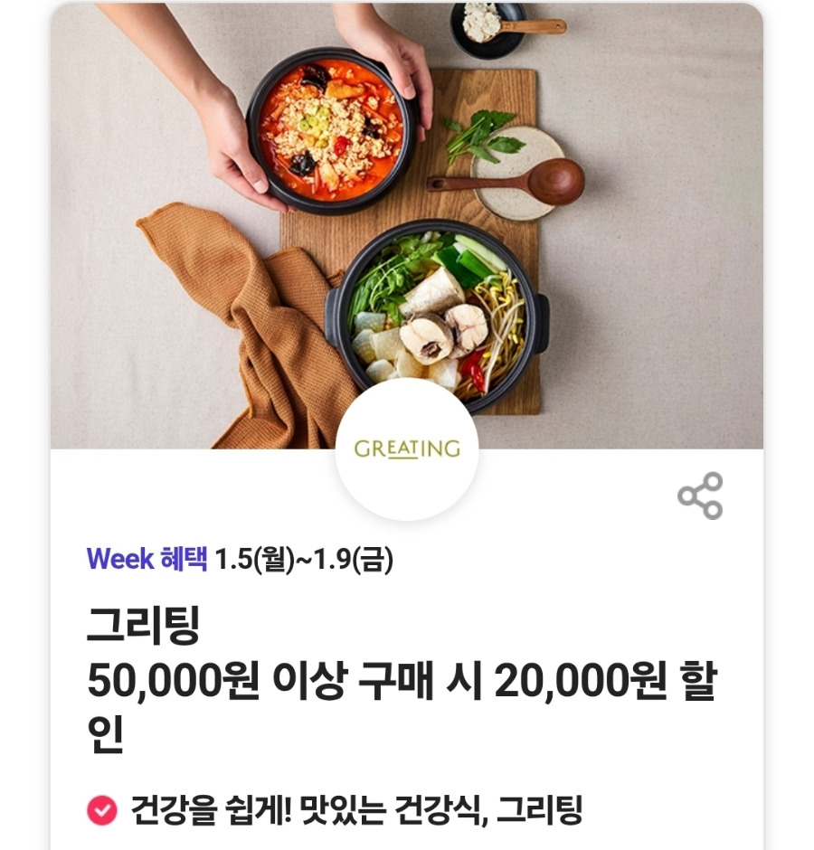 그리팅 50,000원 이상 구매시 20,000원 할인