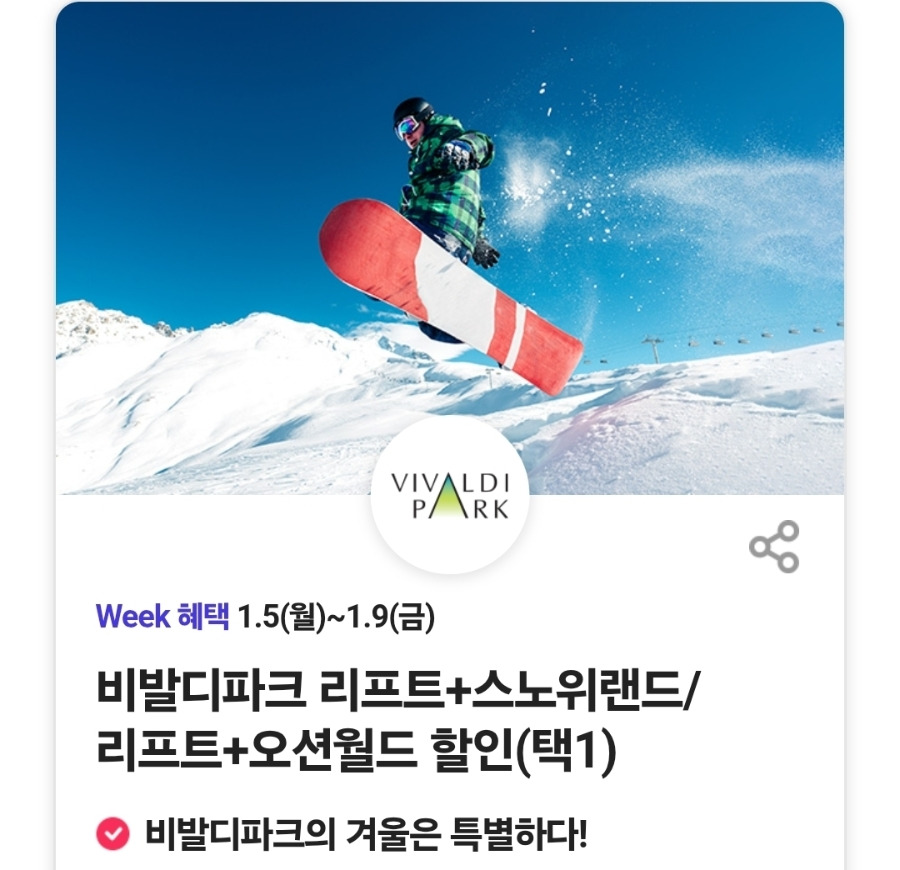 비발디파크 리프트 + 스노위랜드/리프트+오션월드 할인(택1)