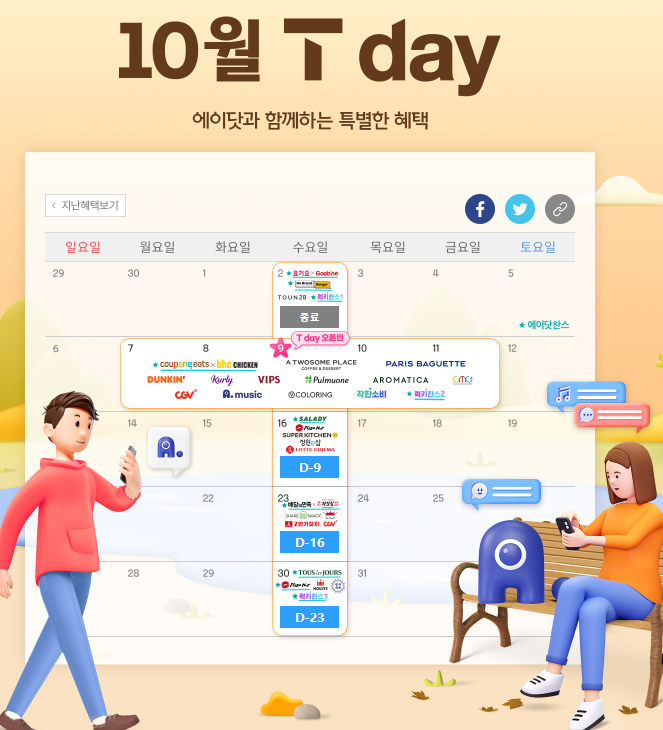 2024년 10월 이번 달 SKT 티데이(TDAY) 어떤 브랜드와 상품의 혜택이 있는지 정리해보겠습니다