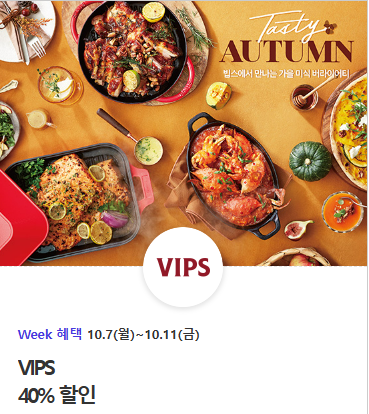 VIPS 40% 할인이며 정가 기준 결제 금액 100,000원 한도내에 최대 40,000원 할인 됩니다